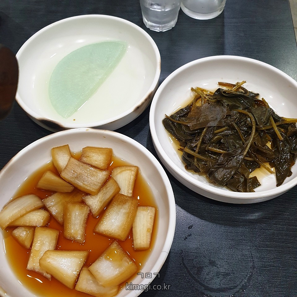 양파절임, 무쌈, 고춧잎? 이렇게 밑반찬이 나옵니다.